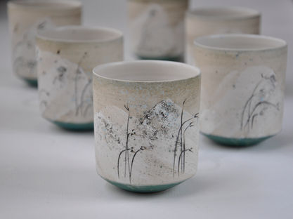 Les tasses Yunomi et les bols matcha Matchawan Inspirés par la technique japonaise kurinuki
